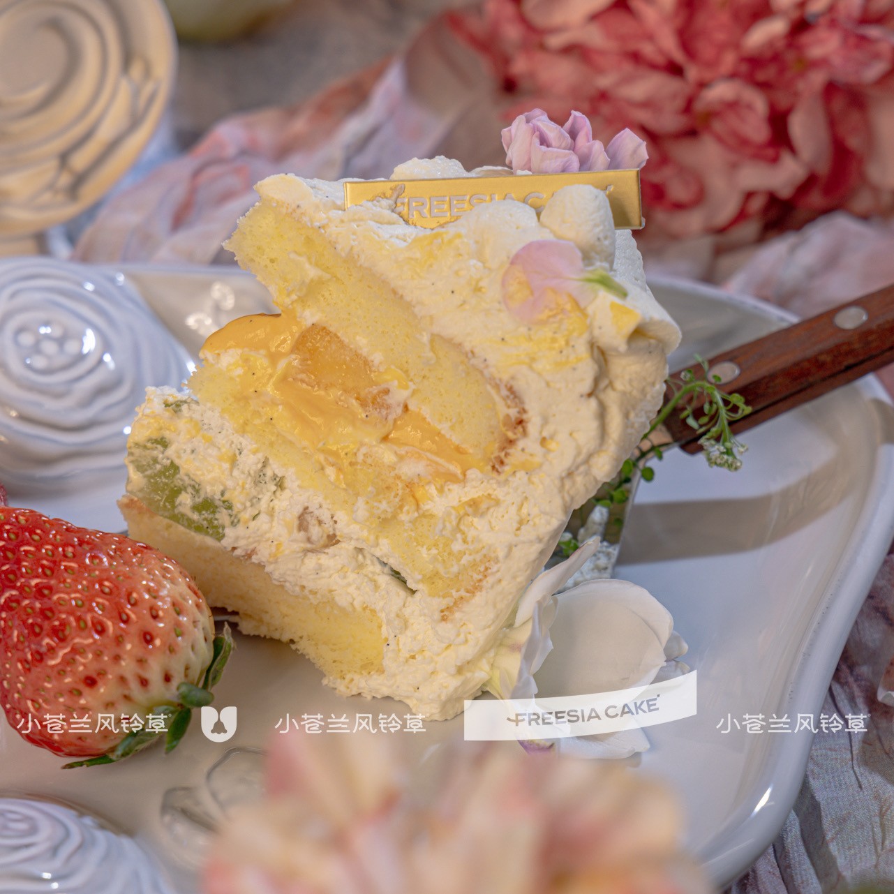 装饰鲜花不得食用,插入蛋糕的鲜花有保护处理过,食用蛋糕前请摘掉。介意者,请选择水果或坚果款蛋糕。